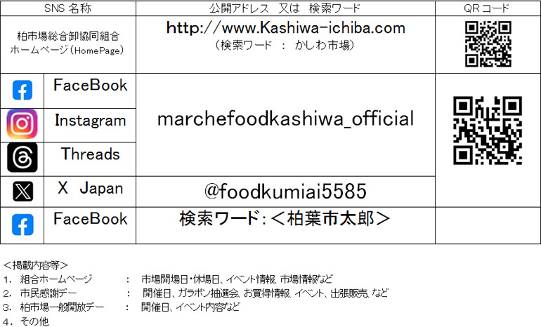2.当組合のSNS(FaceBook、Instagram、Threads、Xjapan(Twitter)にて公開します。